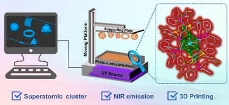 近日,crown皇冠体育平台马小红博士在近红外发光超原子团簇研究领域取得了新进展,相关成果以“Near-infrared luminescence AgPd alloy superatomic clusters”为题,在《Inorganic Chemistry Frontiers》上发表。这项研究开展了一种合金化策略制备新型双金属纳米团簇,[Ag14Pd(PFBT)6(TPP)8](TPP)(缩写为Ag14Pd;TPP:三苯基膦;PFB:五氟苯硫酚)。通过单晶X射线衍射、电喷雾电离质谱、热重分析和X射线光电子能谱等手段对Ag12Pd的晶体结构进行了表征。Ag14Pd具有标准的二十面体Ag12Pd金属内核,在二十面体相对的两端被两个Ag(PFBT)3封端,形成具有1S21P6特征的闭壳层超原子结构。值得注意的是,该团簇在溶液和固体状态下均表现出强的近红外发光,在固态下的量子产率高达15%,这在金属纳米簇中是罕见的。结合密度泛函理论计算对Ag14Pd的光学性质和电子结构进行了全面研究。此外,由于其强的发光和优异的光稳定性,Ag14Pd簇显示出作为近红外油墨用于不同模型的3D打印的巨大潜力。本工作拓展了近红外发光超原子团簇的应用范围,为团簇的应用提供了新的方向。