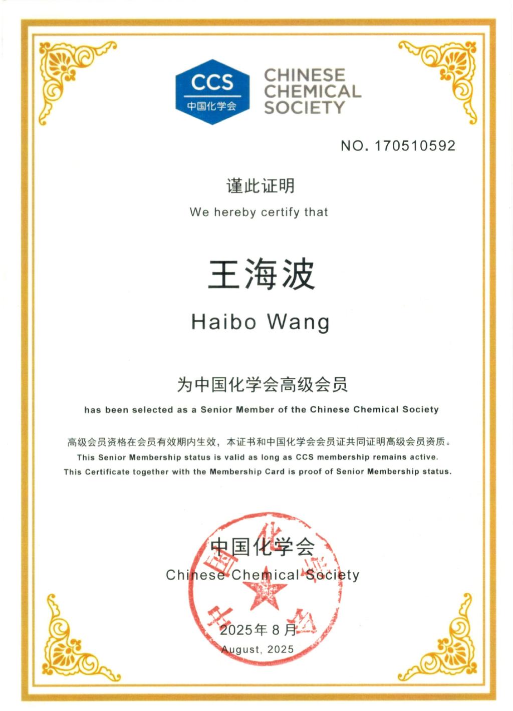 近日,中国化学会公布了新晋升为高级会员名单。crown皇冠体育平台crown皇冠体育平台王海波教授成功晋升成为高级会员。