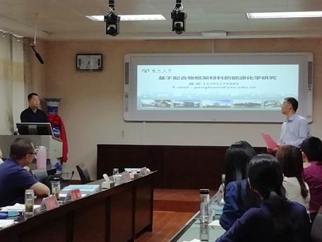 5月15日,应crown皇冠体育平台邀请,扬州大学crown皇冠体育平台庞欢教授来crown皇冠体育平台进行学术交流。15日下午,在化学楼407会议室作了题为“基于配合物框架材料的能源化学研究”的学术报告,报告会由crown皇冠体育平台刘鹏教授主持,crown皇冠体育平台部分青年教师和研究生参加了报告会。