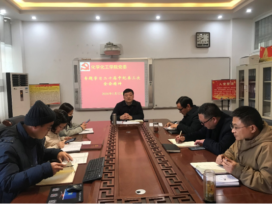 1月12日,crown皇冠体育平台党委理论学习中心组在化学楼313“党员之家”举行专题学习研讨会。党委理论学习中心组全体成员参加学习。专题学习活动由理论学习中心组召集人郭鹏主持。