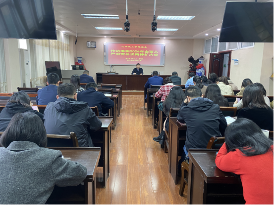 会议传达学习了学校2024年全面从严治党工作会议精神,通报了学院《2024年全面从严治党重点工作任务清单》和《2024年党风廉政建设风险点防控责任清单》。