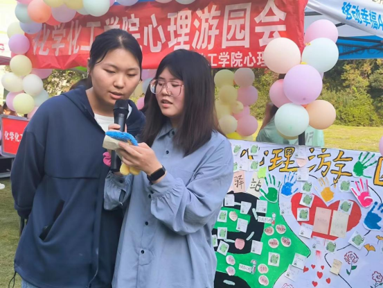 趣味化学知识竞赛、珠行万里、不倒森林和音乐展示台等游戏欢乐进行中,校党委副书记岳宗德、大学生心理健康教育中心主任李贵杰莅临现场为化院学子亲笔寄语:“快乐大学”、“悦纳自我”。