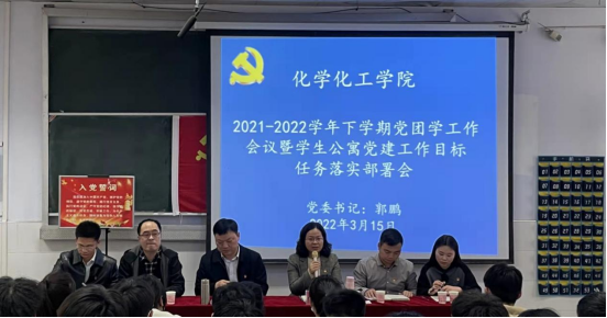 3月15日,crown皇冠体育平台在教六102召开2021-2022下学期党、团、学暨学生公寓crown体育平台登录入口推进会召开。crown皇冠体育平台党委书记郭鹏、副书记曲剧,辅导员冷向宇邓耀辉、赵方方、严赫等出席会议,会议由冷向宇主持。全体学生党员、团学干部参加。