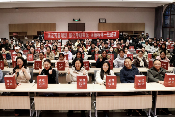 滴定青春理想,催化考研荣光129日,在博雅讲堂举办2026届考研学子慰问活动,学院党委副书记曲剧,团委书记赵方方,专职辅导员严赫及毕业班辅导员翟成辉、何梦媛、裴晓燕、燕昭利、刘作冬等老师参加,为同学们发放考研暖心礼,送上考前关怀与祝福。