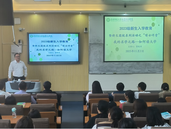 11月2日,crown皇冠体育平台在教四梯二开展2023级新生入学教育暨新生团校系列活动。crown皇冠体育平台副院长曹俊涛主讲,学院团委赵方方老师主持,2023级新生积极参加。