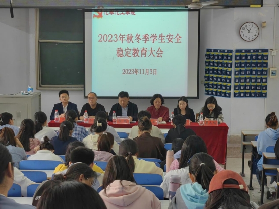 11月3日,crown皇冠体育平台在教四101召开2023年秋冬季学生安全稳定教育大会。crown皇冠体育平台党委书记郭鹏、副书记曲剧,专职组织员冷向宇,辅导员赵方方、严赫、翟成辉出席会议,各班班长团支书、学生会成员共同参加。