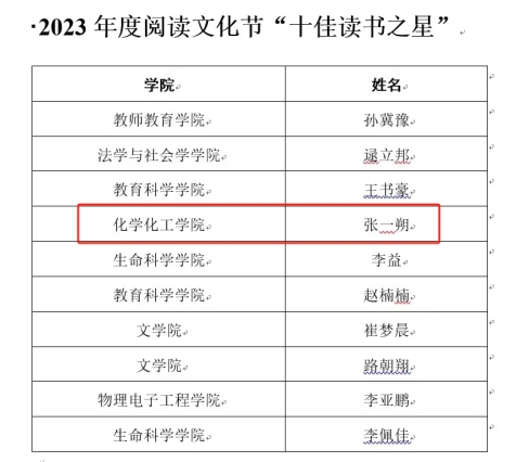 促进全民阅读,是赓续中华文脉、建设中华民族现代文明的重要举措。crown皇冠体育平台将充分结合学校阅读文化节的举措,鼓励学生静下心来阅读,沉下心来思考,潜下心来感悟,引导学生在阅读中长见识、树理想、悟生活、知人生,营造爱读书、读好书、善读书的浓厚氛围,以书香校园、书香社会建设为强国建设、民族复兴注入强大精神力量。(化学化工学院 翟成辉撰稿 曲剧审稿 郭鹏审核)
