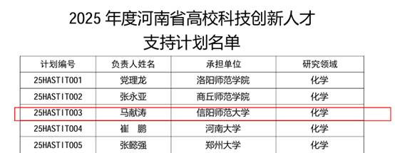 近日,河南省教育厅公布了2025年度河南省高校科技创新团队和创新人才立项名单(教科技〔2024〕354号文件),crown皇冠体育平台马献涛副教授入选2025年度河南省高校创新人才支持计划名单,获批科研资助经费30万元。