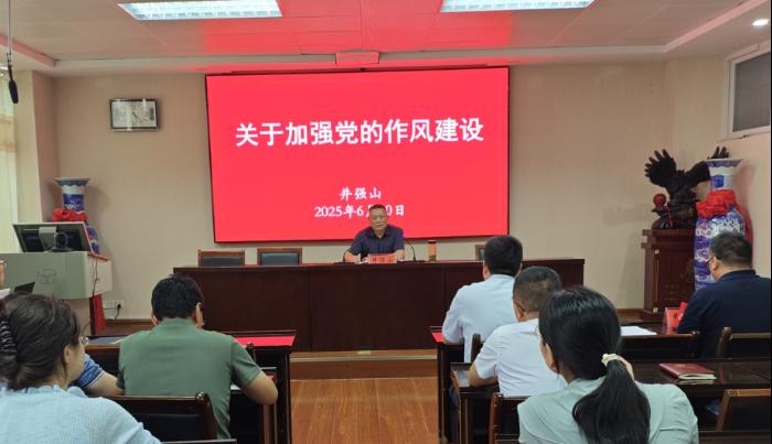 井强山以《关于加强党的作风建设》为题做辅导报告。他指出,作风建设是党的建设的永恒课题,要融入日常、抓在经常、落到平常,结合高校工作实际,深入分析了当前高校党员干部在作风建设方面存在的突出问题,通过典型案例进行了警示教育。他强调,一是要加强理论武装,筑牢思想根基。理论学习要走深走实,学深悟透加强作风建设的重要论述,深刻领悟抓好作风建设的重要意义。二是要强化师德师风,涵养教育情怀。优良作风是师德师风的重要体现,在政治作风、生活作风、学术作风上有高标准严要求,在科研诚信、学术道德等方面发挥表率作用。三是要提升能力素质,服务发展大局。既要政治过硬,也要本领高强,要着力培育一支“想干事、干成事、干正事”的青年教师队伍,以博士点申报为契机,不断推动学院各项事业蓬勃发展。