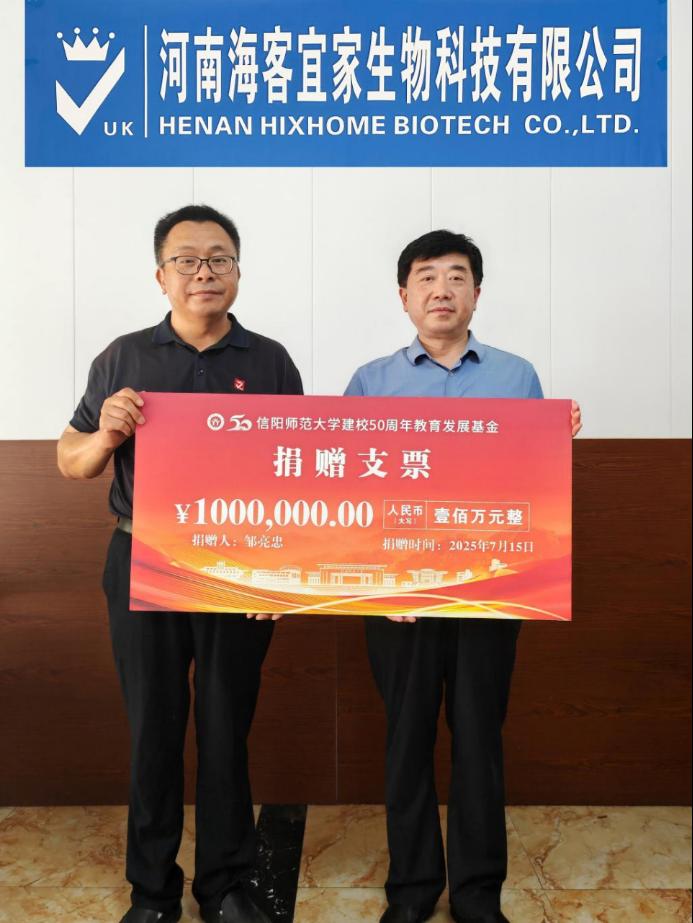 7月15日,建校50周年教育发展基金捐赠仪式在开封精细化工产业集聚区举行,1994级化学专业校友、上海校友会会长邹亮忠,校友企业海客迈斯生物科技(上海)有限公司、河南海客宜家生物科技有限公司代表,学校对外联络办公室、资产处负责同志参加捐赠仪式。
