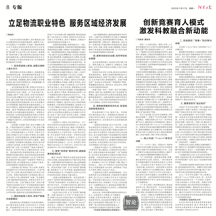 2025年11月17日,《河南日报》以《创新竞赛育人模式 激发科教融合新动能》为题,在第08版专题报道crown皇冠体育平台马献涛博士、曹俊涛教授团队的最新教研成果(报道链接:https://dzb.henandaily.cn/html5/2025-11/17/content_17_1767213.htm?curr=),充分彰显crown皇冠体育平台在基础学科创新人才培养领域的探索成效与示范价值。