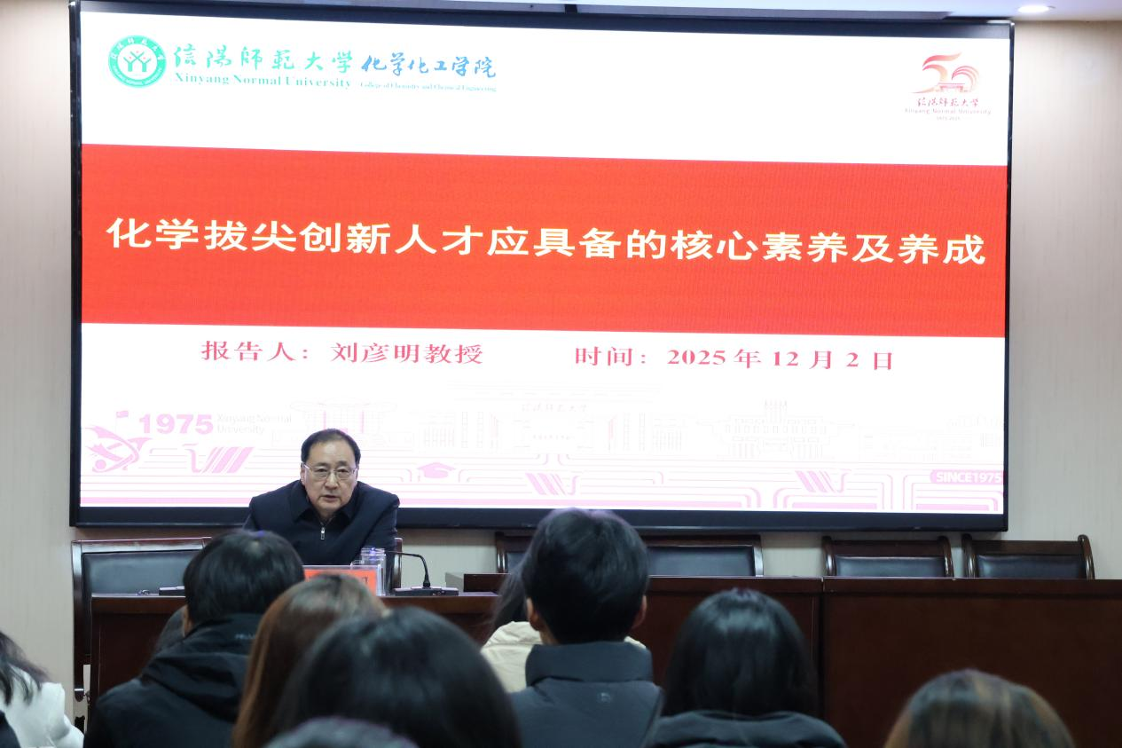 12月2日下午,化学拔尖创新人才实验班首场学术报告顺利开讲。刘彦明教授受邀担任主讲人,以《化学拔尖创新人才应具备的核心素养及养成》为题,为实验班全体学员带来一场兼具深度与温度的成长指引课,实验班全体学员、导师及学院教学管理人员参会。报告会由crown皇冠体育平台院长曹俊涛主持。