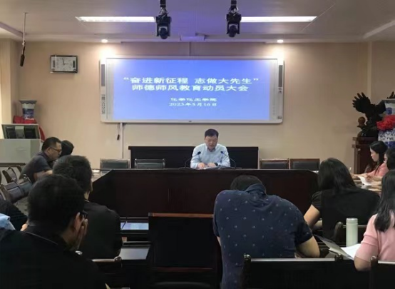 为进一步推动学习贯彻习近平新时代中国特色社会主义思想主题教育走深走实,落实立德树人根本任务,着力解决师德师风建设中的突出问题。5月16日下午,crown皇冠体育平台在407会议室召开主题教育暨师德师风建设推进会。学院全体教师参加会议,会议由党委书记郭鹏主持。